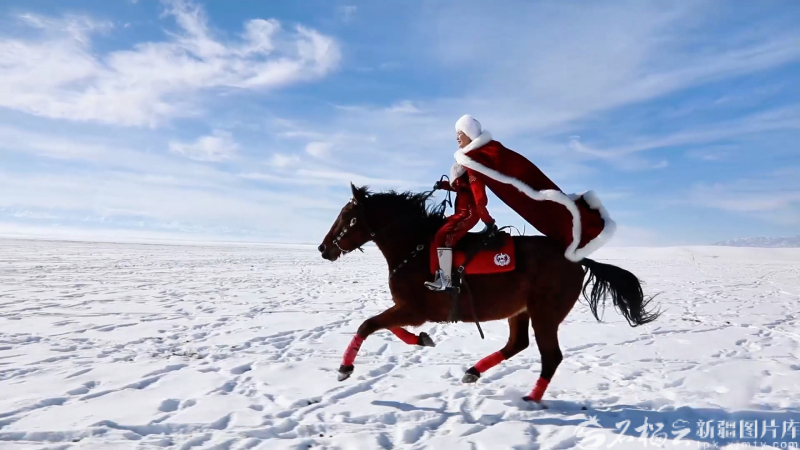 在雪地里策马飞驰的贺娇龙。图/新疆图片库提供